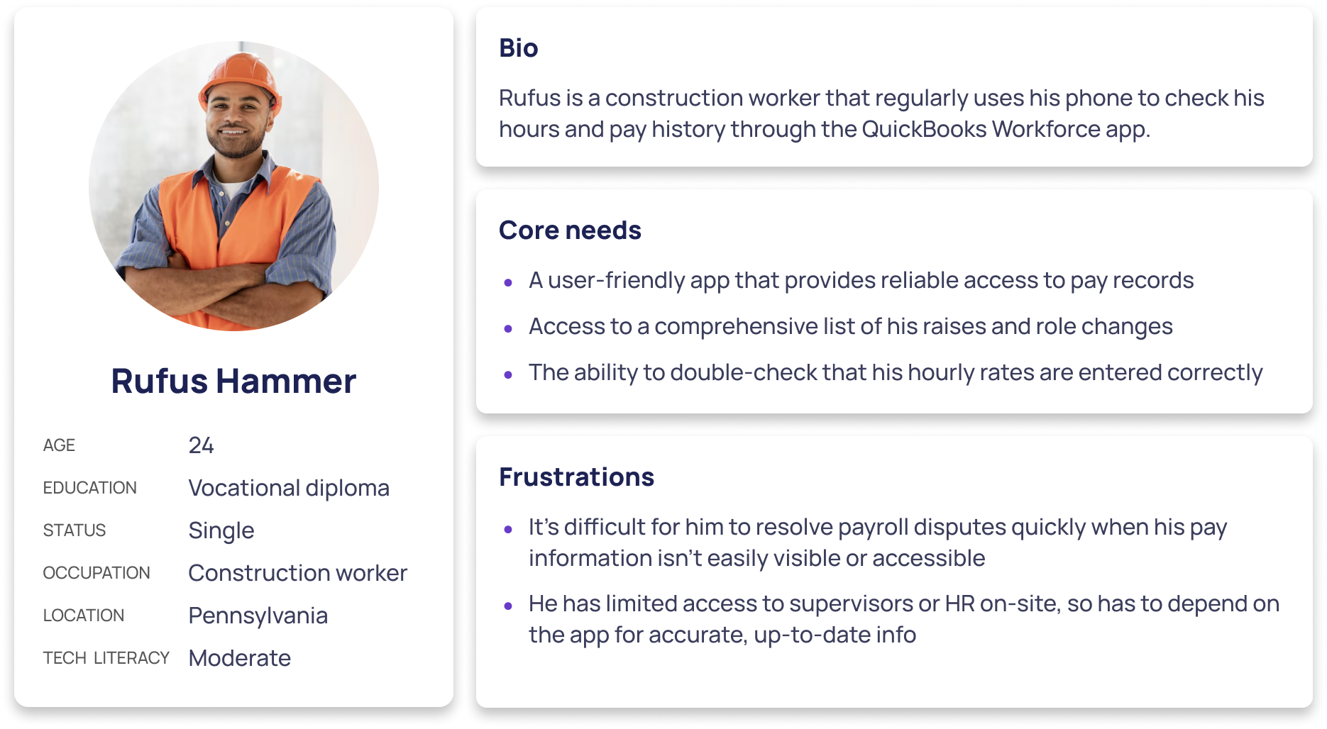 We discovered that QuickBooks users were using the Notes tab as a diary for employee pay changes. This research drove the creation of personas.
